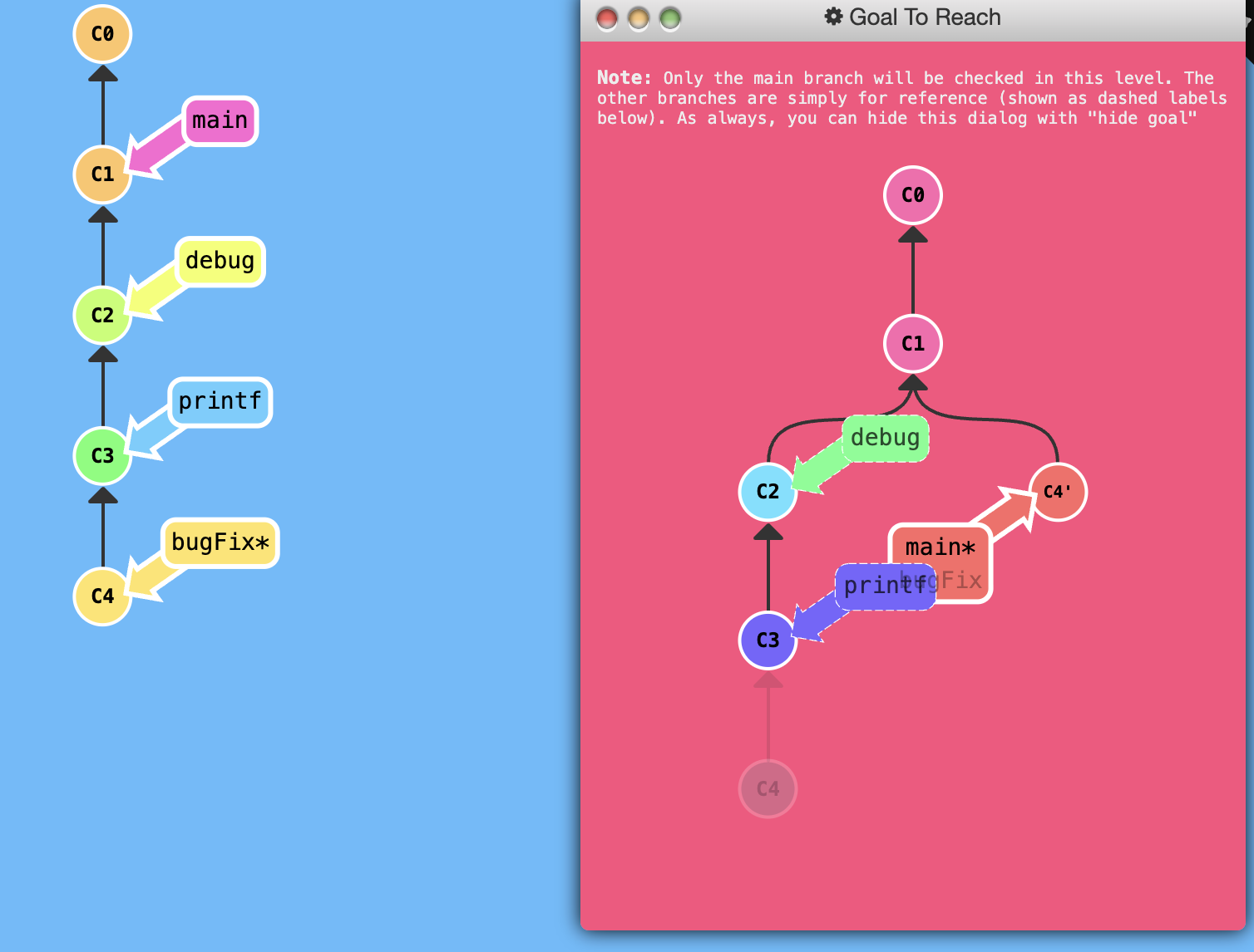 git rebase bugFix main将main直接移动到bugFix,同时指针移动到main