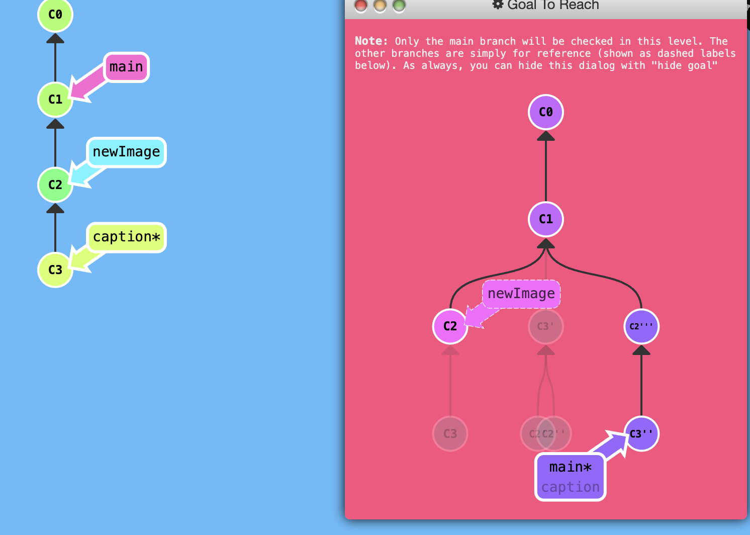 话虽如此,我现在可以基于结构和撇号的相对差异来比较不同关卡的结果。只要你的主分支提交树结构一致,并且各提交之间的撇号差异关系保持不变,我就会给予满分。